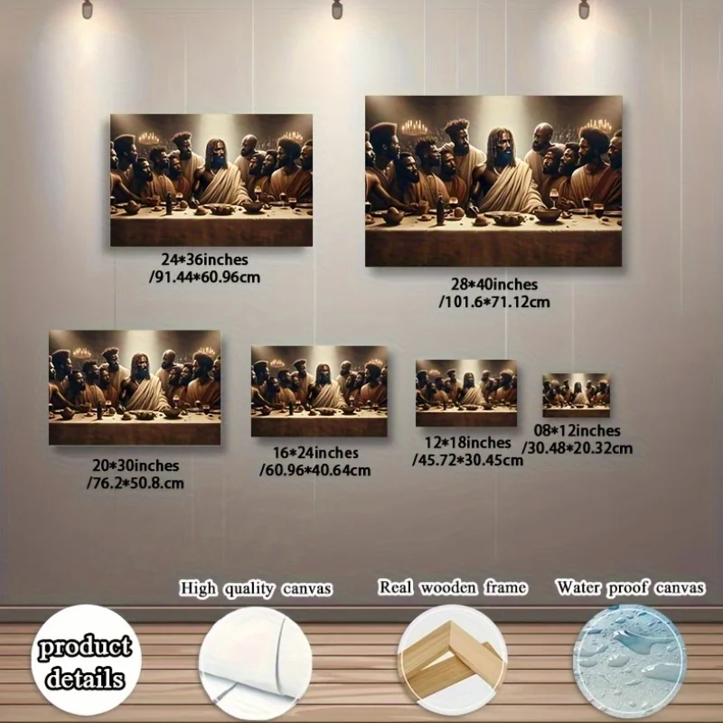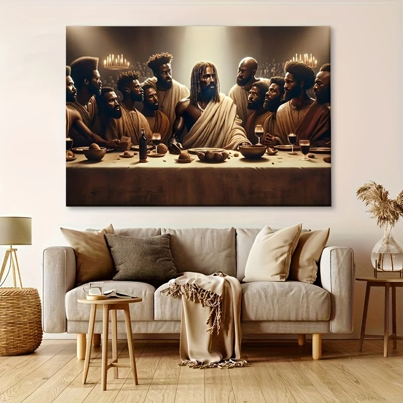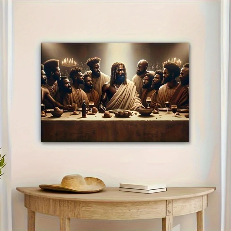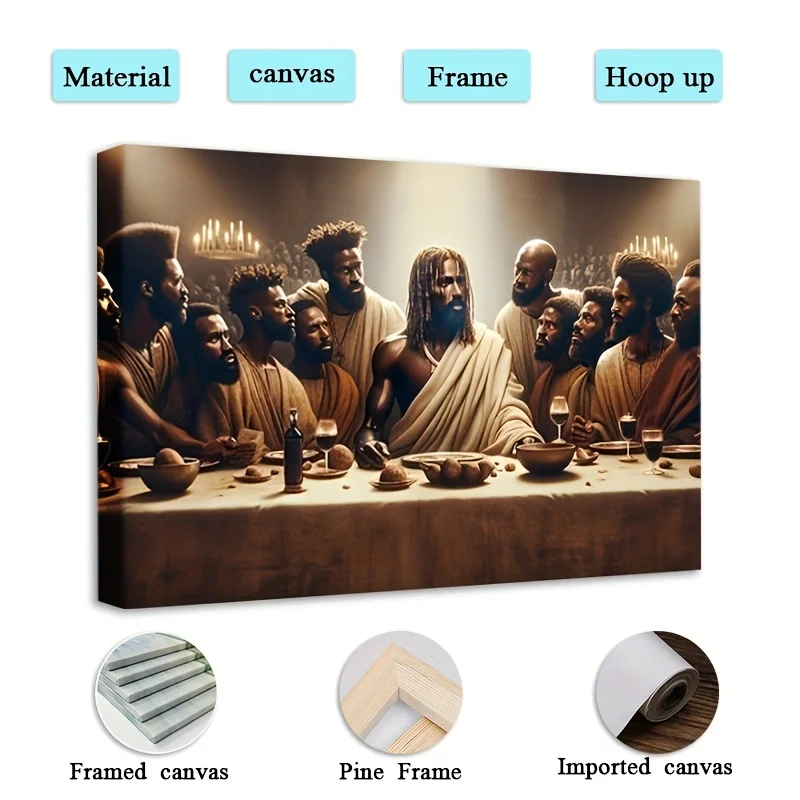 1Pc Framed African American Jesus Last Supper Canvas | Ready-to-Hang Religious Wall Art | Multi-Occasion Gift & Room Decor