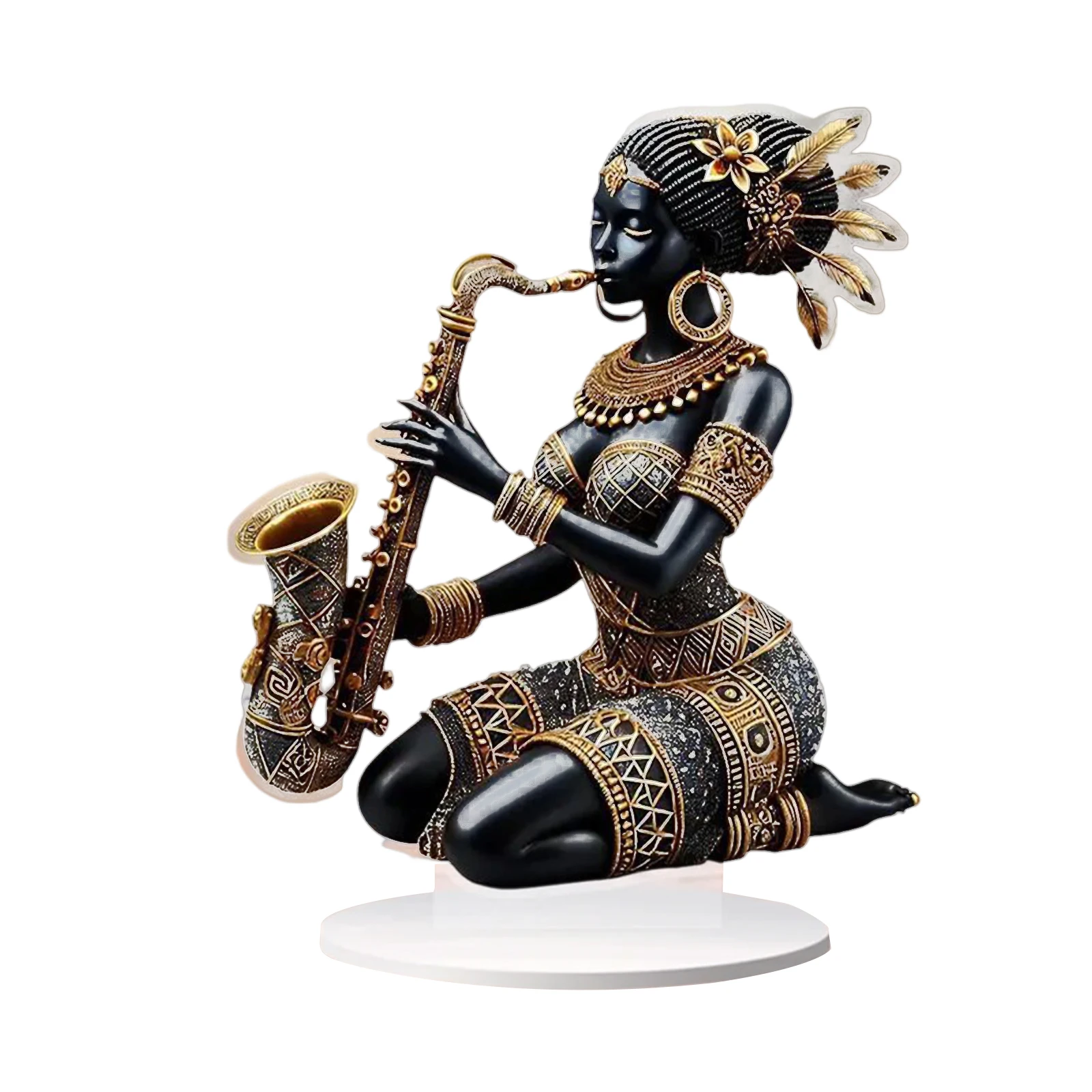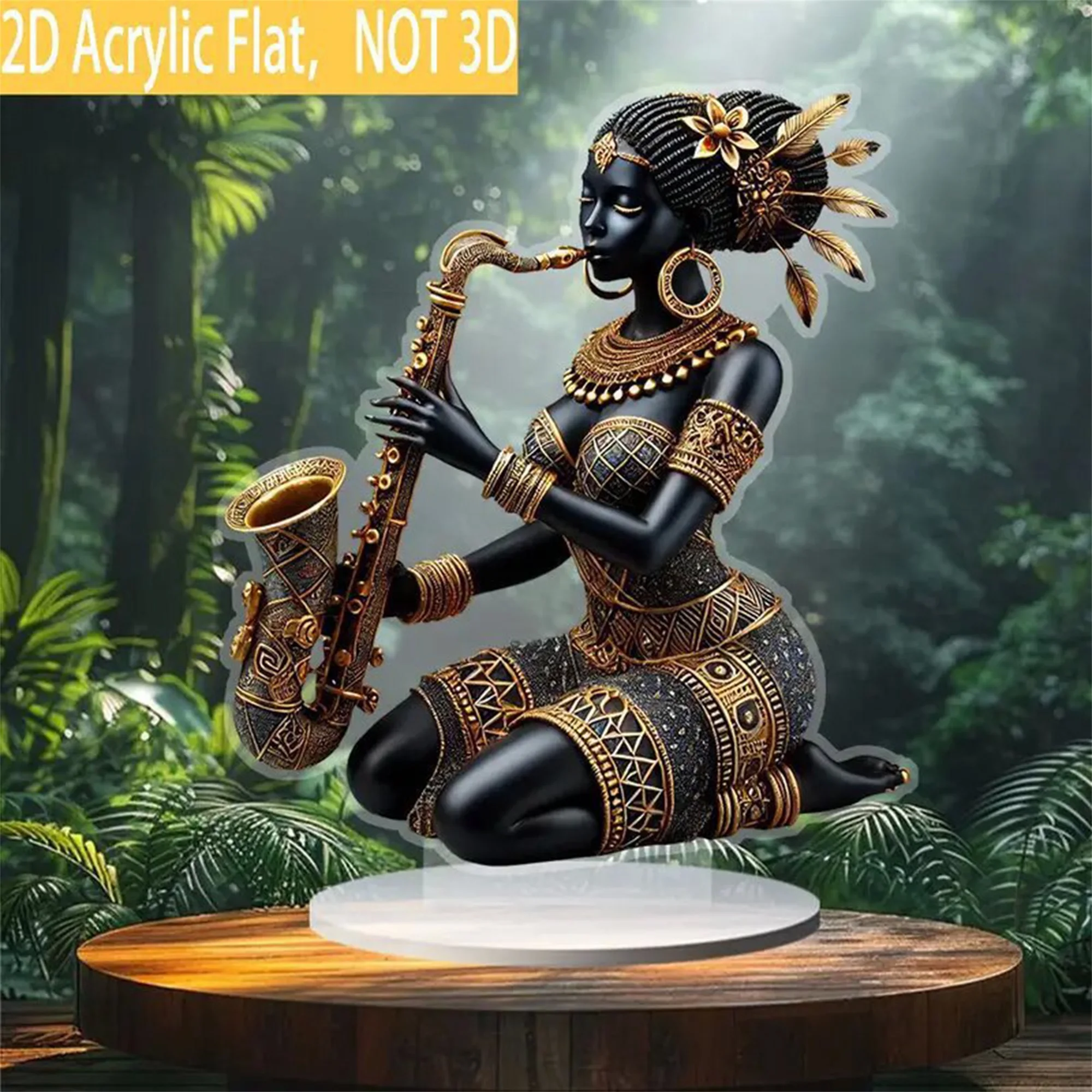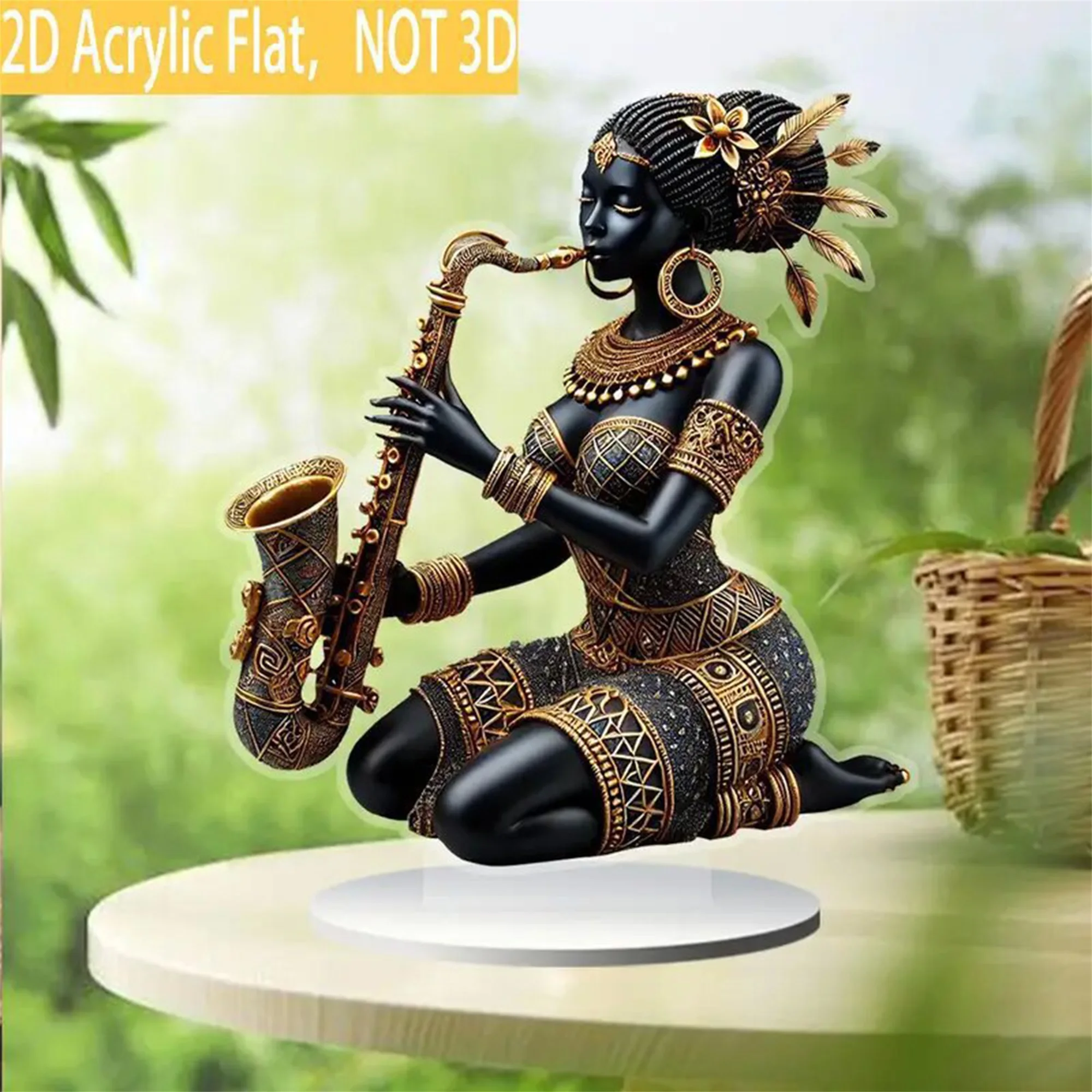 2D Acrylic Flat African Lady Statue Desktop Centerpiece Playing Saxophone Tribal Figurine for Home DecorSpecifications: