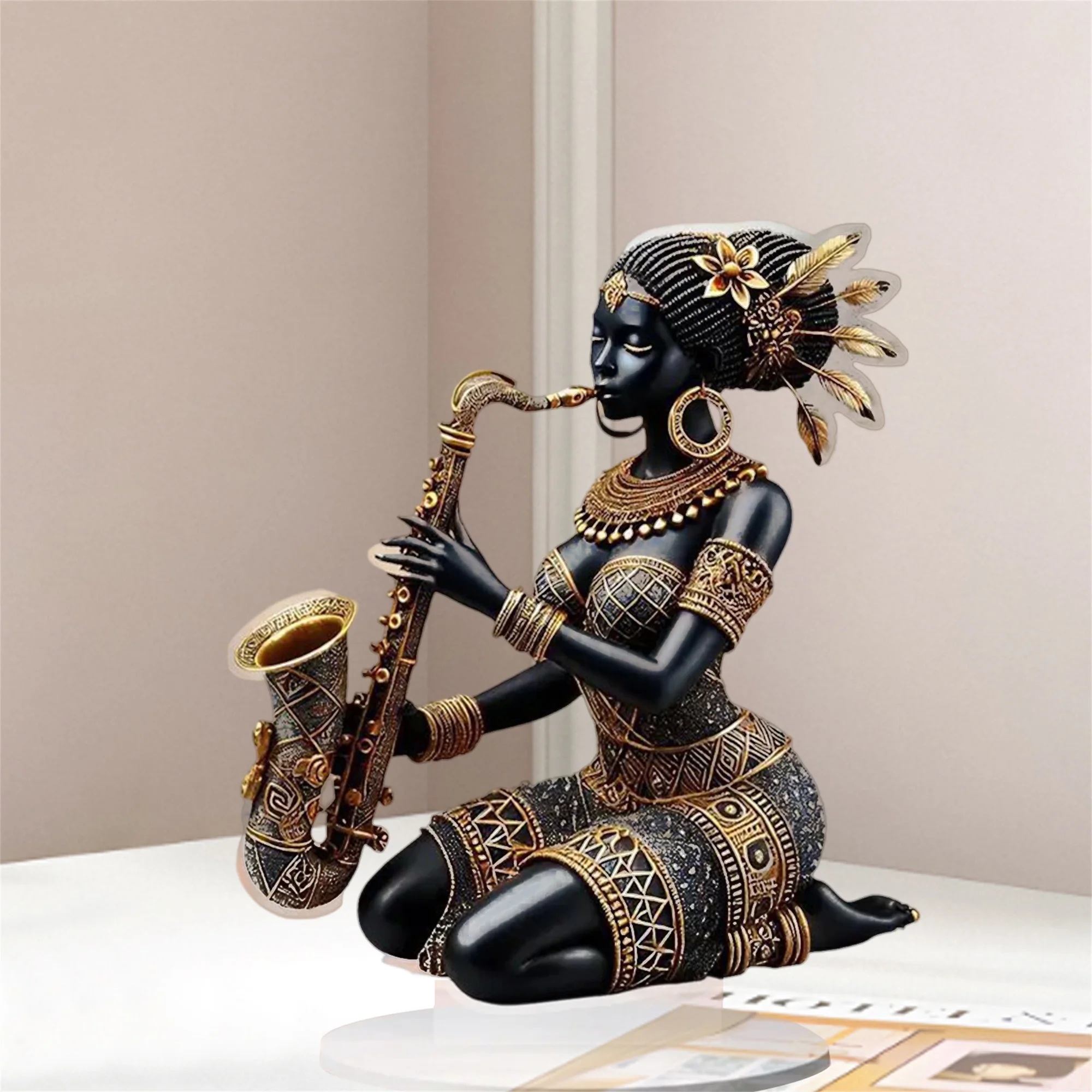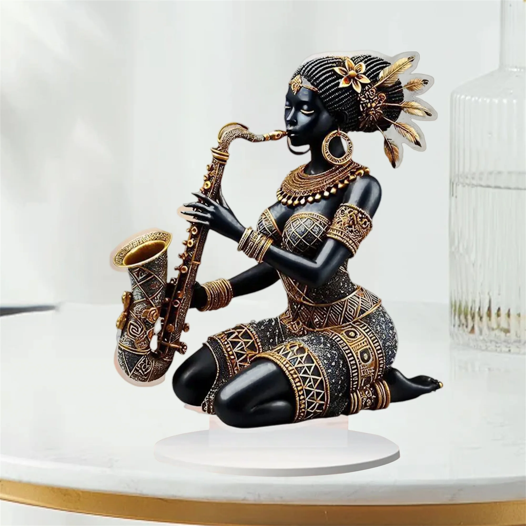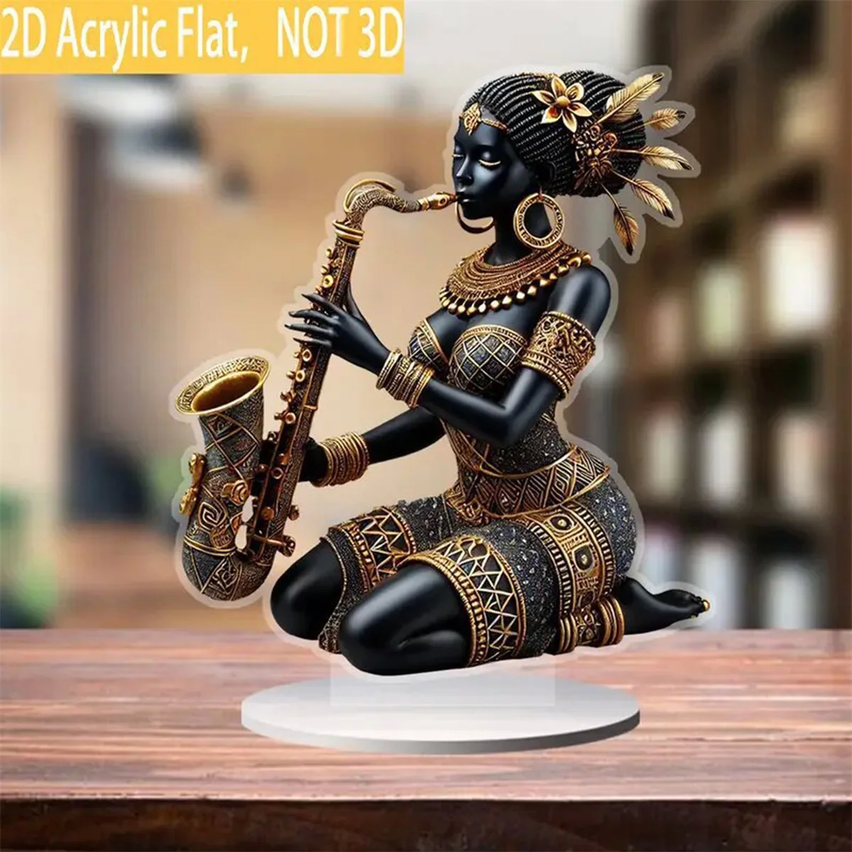 2D Acrylic Flat African Lady Statue Desktop Centerpiece Playing Saxophone Tribal Figurine for Home DecorSpecifications: