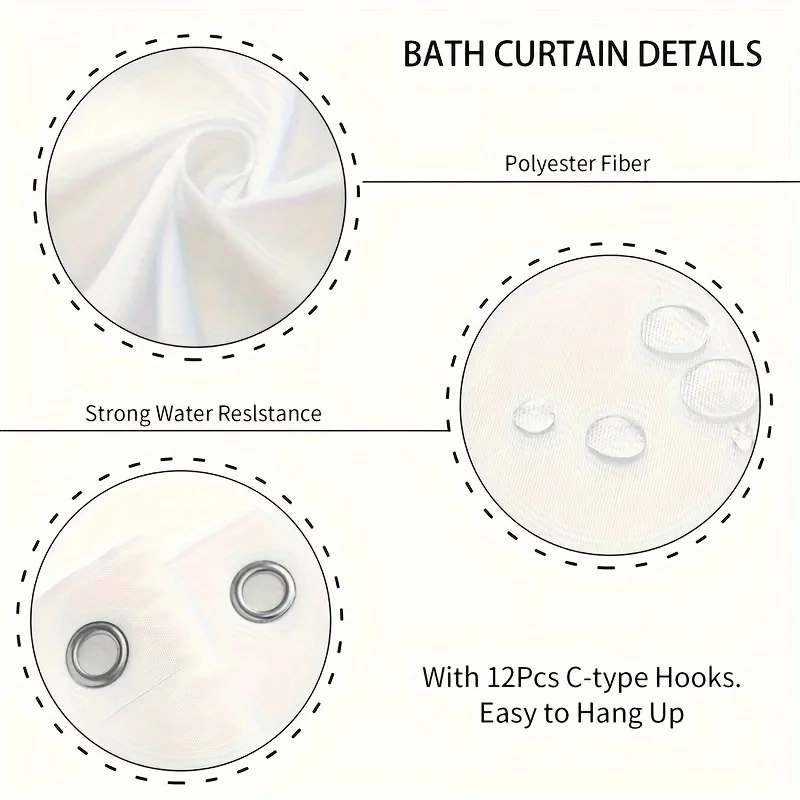 1. Constructed from 100% polyester fiber, this curtain is antibacterial, waterproof, and resistant to mold, ensuring safety and environmental friendliness.