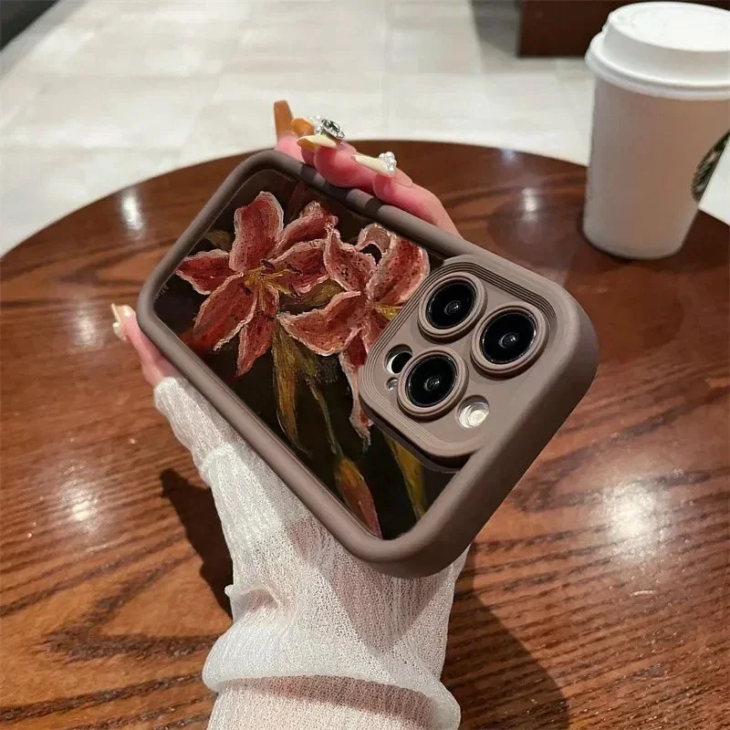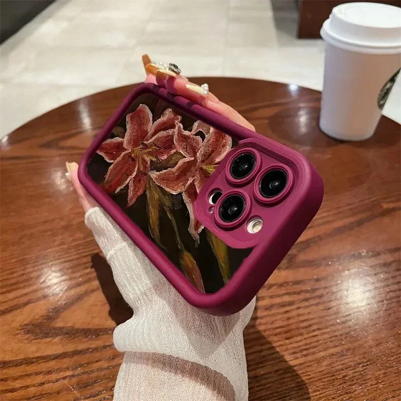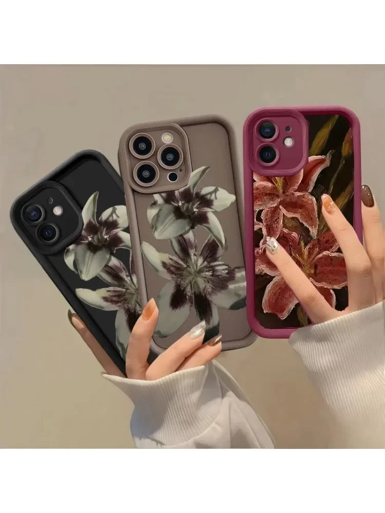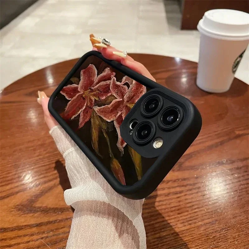 Oil Painting Lily Flower Pattern Phone Case For iPhone 17 16 15PROMAX 14 13 12 11PRO Silicone